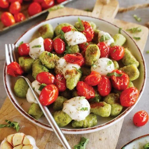 Τα νιόκι με σπανάκι, ντοματίνια και μοτσαρέλα αποτελούν μια εύκολη και γευστική ιδέα χωρίς γλουτένη. Ο συνδυασμός των φρέσκων υλικών και της μεσογειακής γεύσης δημιουργεί ένα ελαφρύ αλλά απολαυστικό πιάτο, με ισορροπημένη υφή και πλούσιο άρωμα!