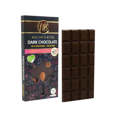 Σοκολάτα Υγείας Χωρίς Ζάχαρη 72,7% Με Πρωτόγαλα και Αμύγδαλα